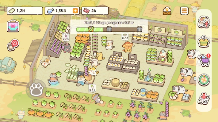 Selami dunia "Cat Mart : Taikun Pasar Mini"! Urus kedai barangan kucing anda, tanam hasil organik, proses makanan, dan ambil pekerja kucing comel. Saksikan pelanggan kucing yang menggemaskan beratur untuk pengalaman yang menyeronokkan dan mudah dimainkan.