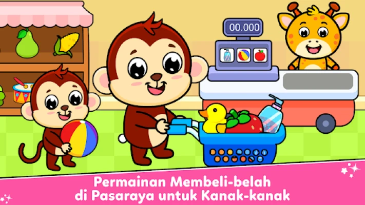 Lebih daripada sekadar permainan, "Permainan Membeli-belah di Pasaraya untuk Kanak-kanak" direka untuk memperkasakan perkembangan si cilik anda. Melalui interaksi sentuh, seret, dan lepas, mereka akan meningkatkan koordinasi mata-tangan serta kemahiran motor halus. Aspek pembayaran dan pengurusan barangan pula mengajar logik dan penaakulan awal, membina asas penting untuk pembelajaran masa depan. Dengan kandungan 100% mesra kanak-kanak, aplikasi ini memupuk imaginasi, kreativiti, dan keupayaan menyelesaikan masalah dalam persekitaran digital yang positif dan memperkaya. Sediakan anak anda untuk pengembaraan membeli-belah yang ceria dan bermakna!
